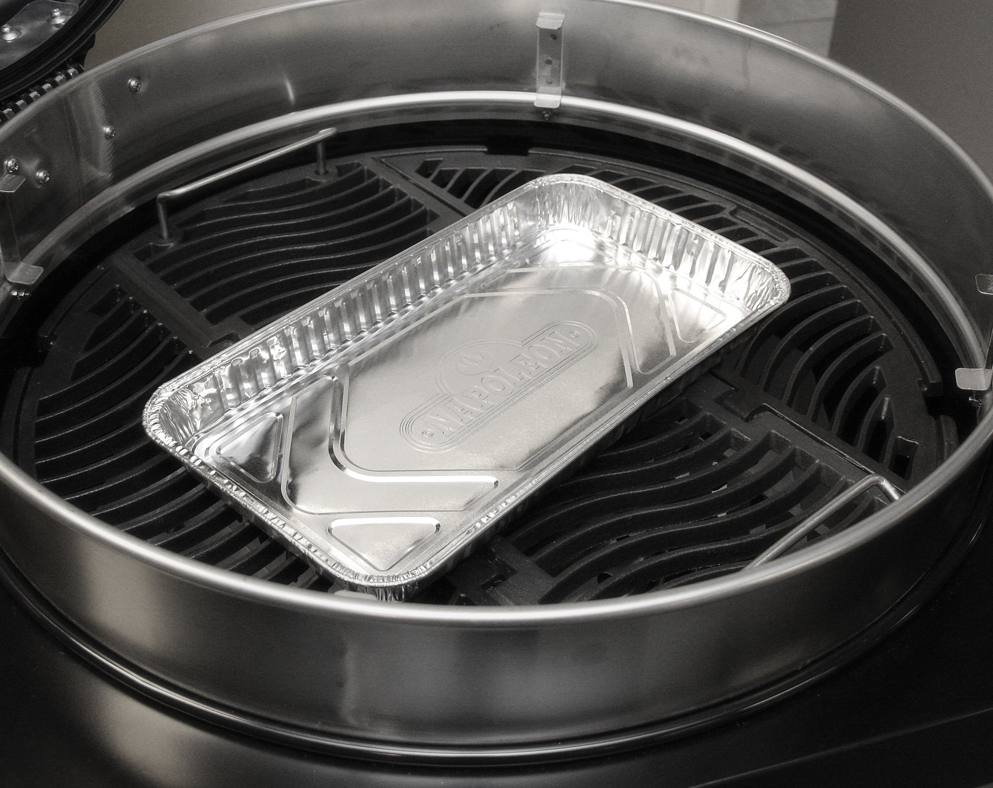 Fettauffangschalen sind ein wichtiges Zubehör für Ihren Gasgrill. Die Fettauffangschalen von Napoleon machen es Ihnen leicht, Ihren Grill und Außenbereich sauber zu halten. Napoleon-Grills sind mit hocheffizienten Flammschutzeinsätzen ausgestattet, die das Fett bei Kontakt verdampfen lassen, aber manchmal gelangt trotzdem etwas hindurch. In diesem Fall landet das Fett in der großen Auffangwanne und wird zur entnehmbaren Fettschale geleitet. Sie sollten Ihre Fettauffangschale nach zehn Mal Grillen überprüfen, um sicherzustellen, dass diese nicht zu voll ist, und bei Bedarf eine neue einlegen. Die Fettauffangschalen zu überprüfen gehört zur regelmäßigen Instandhaltung des Grills dazu und sorgt dafür, dass Sie Ihren Napoleon noch jahrelang benutzen können.